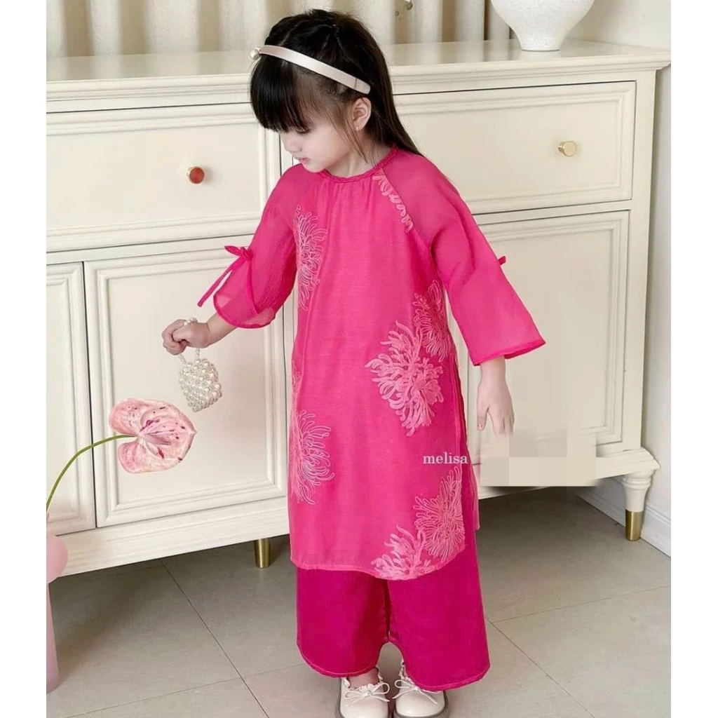 🔥 Bộ áo dài tơ thêu hoa Quỳnh cho bé 10_40kg đang giảm giá!