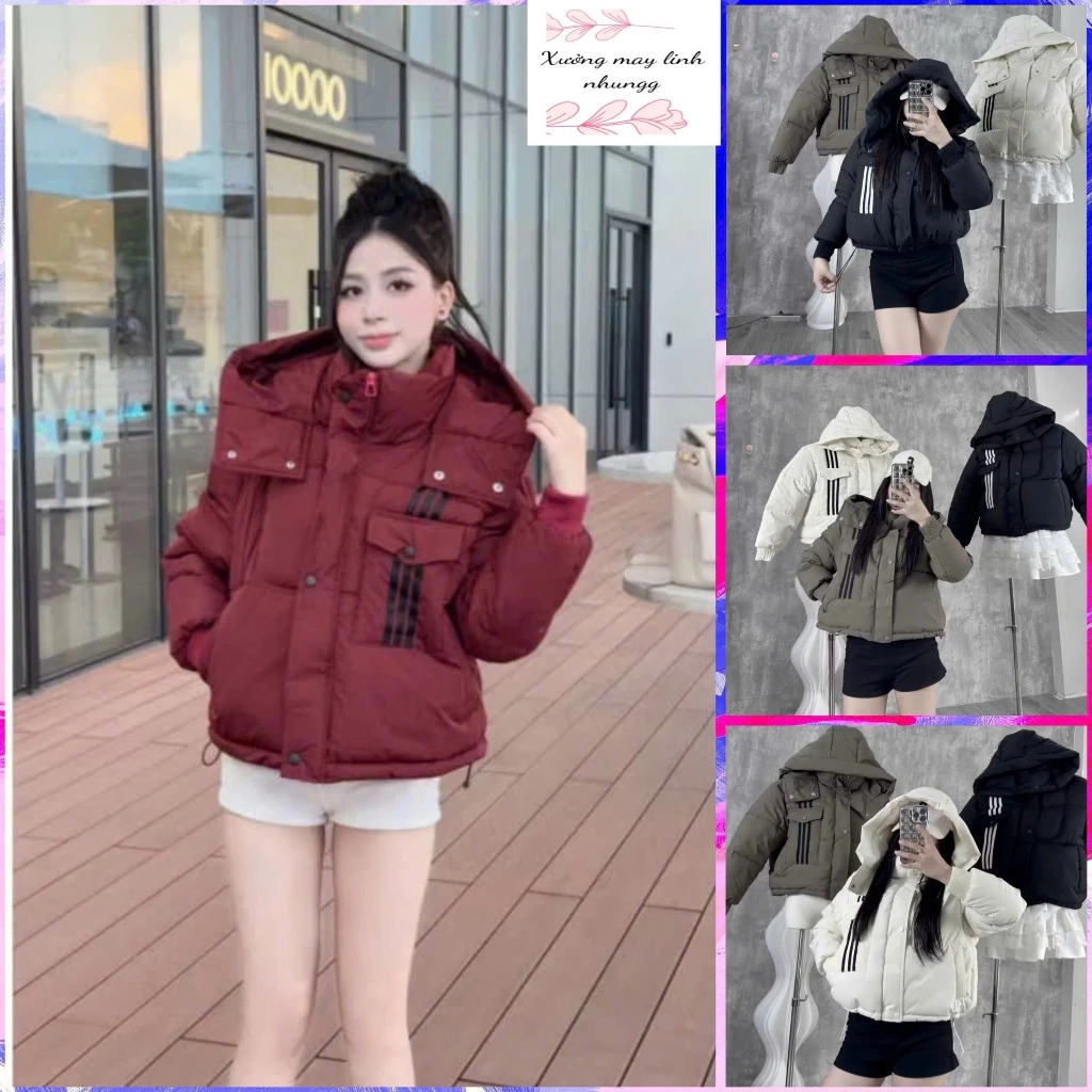 🔥 [GIÁ MỞ BÁN VOUCHER ]Áo Phao Thời Trang Dáng Ngắn Túi Sọc Mũ Liền Có Dây Rút Freesize đang giảm giá!