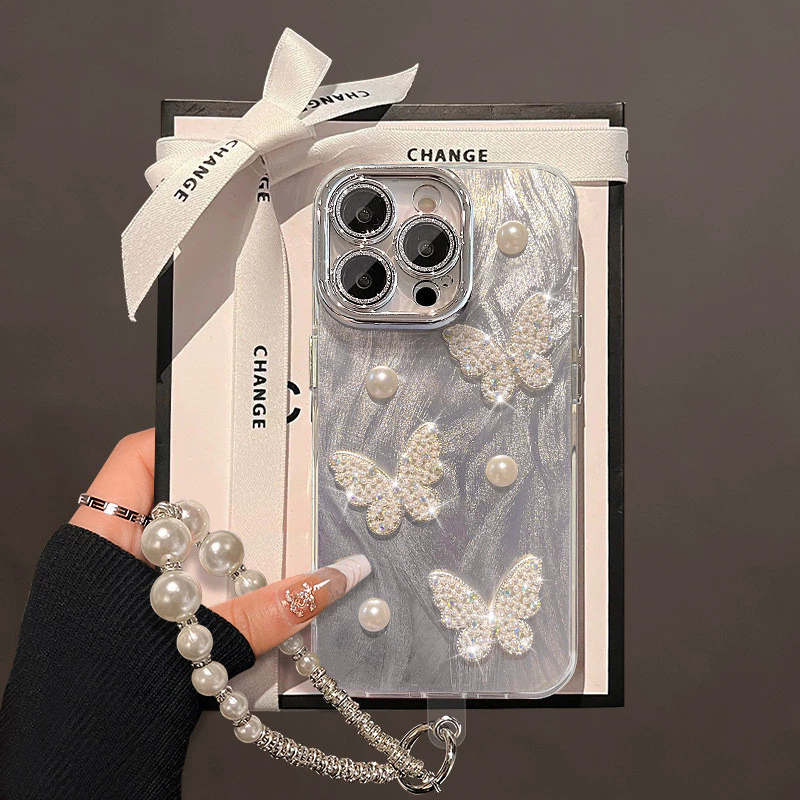🔥 Ba Chiều Ngọc Trai Bướm Vòng Tay Lông Sợi Ốp Lưng Điện Thoại Cảm Giác Cao Cấp Đơn Giản Thích Hợp Cho iPhone16 / 13ProMax đang giảm giá!