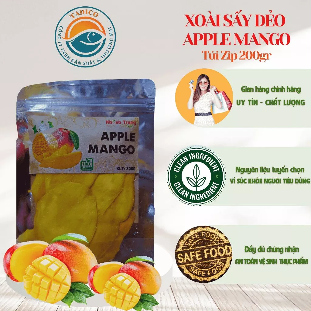 🔥 Apple Mango – Xoài Úc Cam Lâm Sấy Dẻo – Túi 200g – Tadico_ Đặc Sản Nha Trang đang giảm giá!