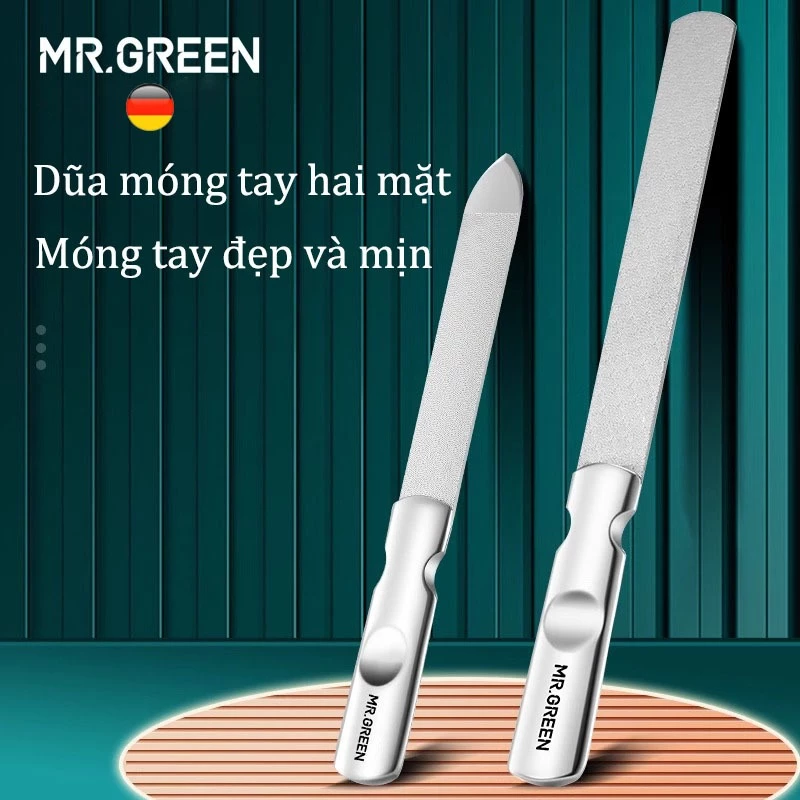 - Chất liệu cao cấp: MR.GREEN sử dụng chất liệu cao cấp để sản xuất dũa móng tay hai mặt, đảm bảo độ bền và hiệu suất cao.
