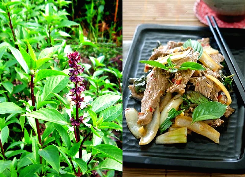 Thịt bò thái sợi, xào nhanh với tỏi và lá húng quế, tạo hương thơm hấp dẫn mà không cần nhiều gia vị.