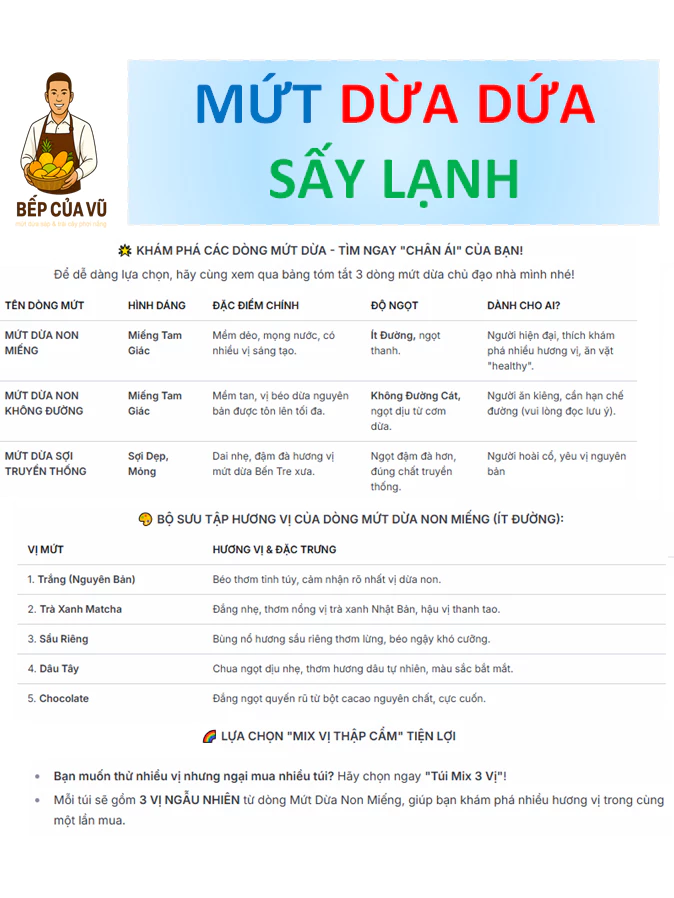 5. Lựa chọn sản phẩm sợi ăn vặt chất lượng – giới thiệu mẫu “MỨT DỪA DƯỚI BẾN TRE”