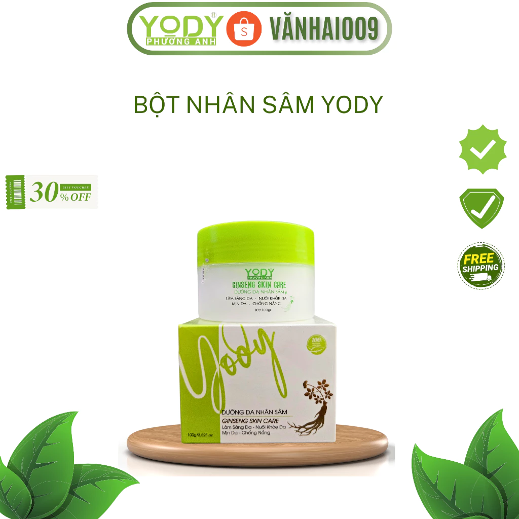 - Thành phần tự nhiên: Bột nhân sâm Yody Phương Anh được làm từ nhân sâm, một loại thảo dược được biết đến với khả năng chăm sóc da an toàn và hiệu quả.