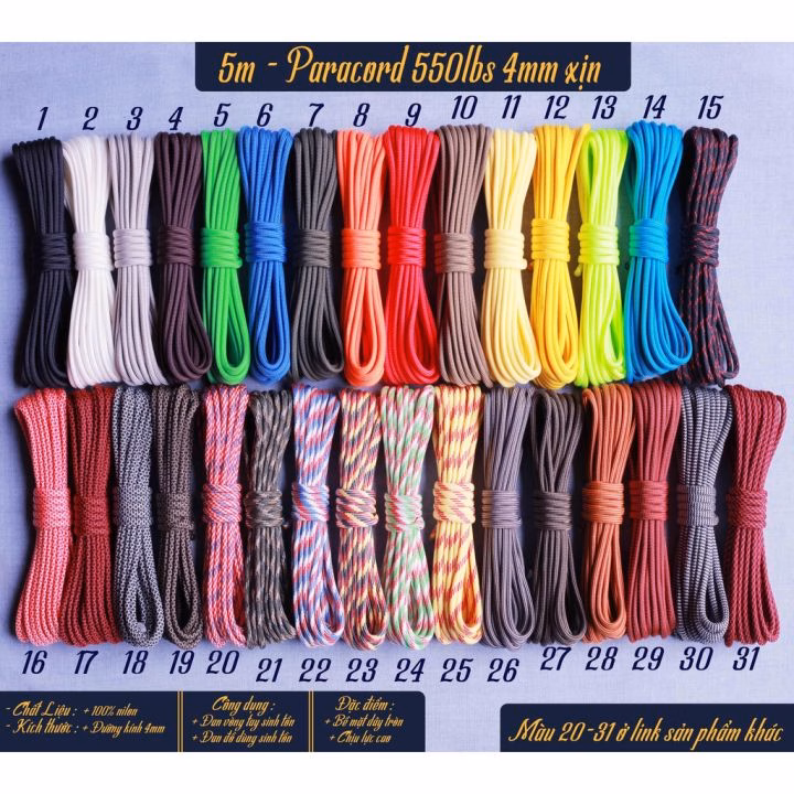 🔥 Dây Paracord 550lbs 4mm ,Hàng cao cấp chuẩn 100% Polyester-Cuộn 3m-5m.Làm phụ kiện Handmade-Vòng Tay,Cắm Trại,Sinh Tồn đang giảm giá!
