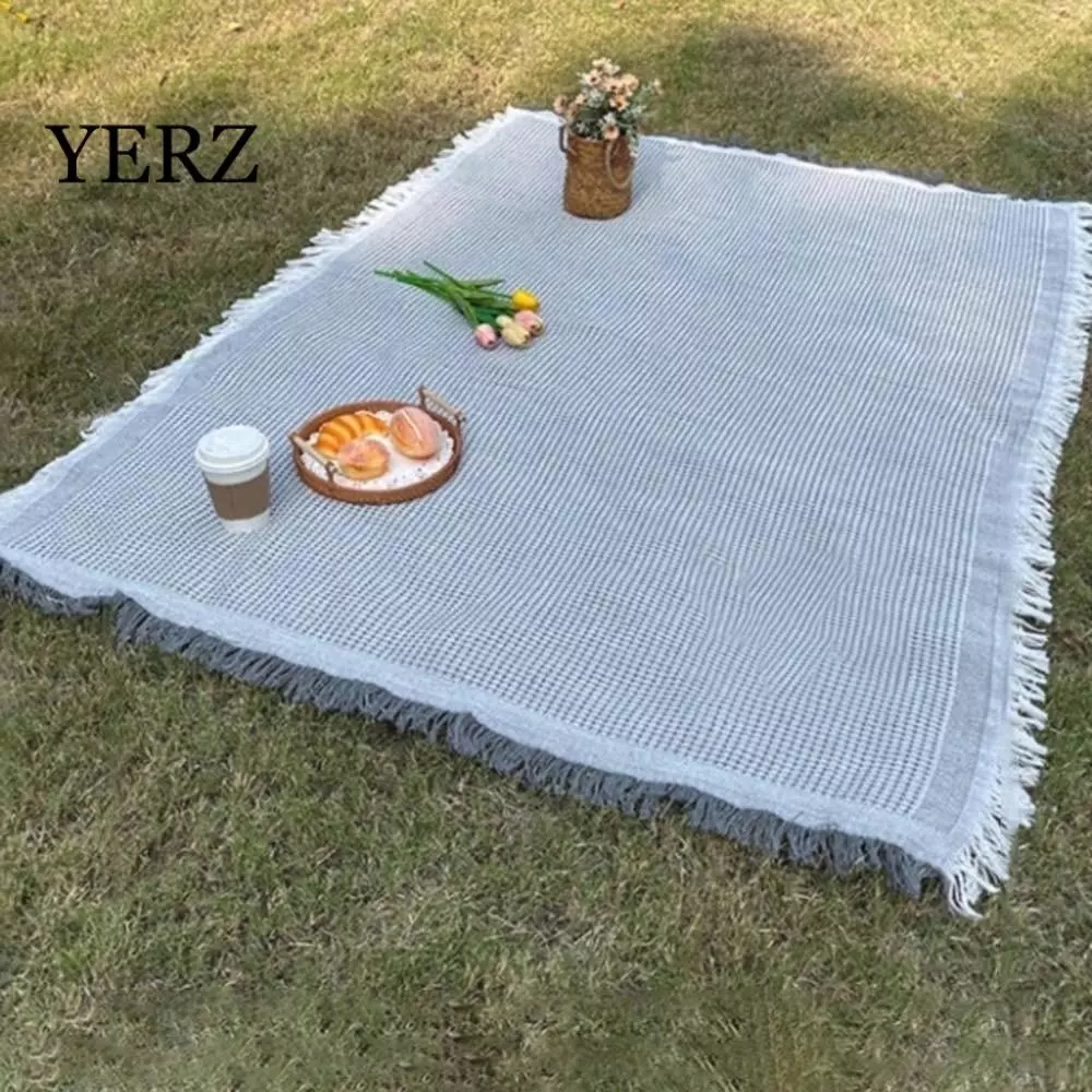 🔥 Khăn trải bàn YERZ có tua rua, kích thước 180x130cm, từ vải lanh dễ gấp gọn, phù hợp cho picnic và camping đang giảm giá!
