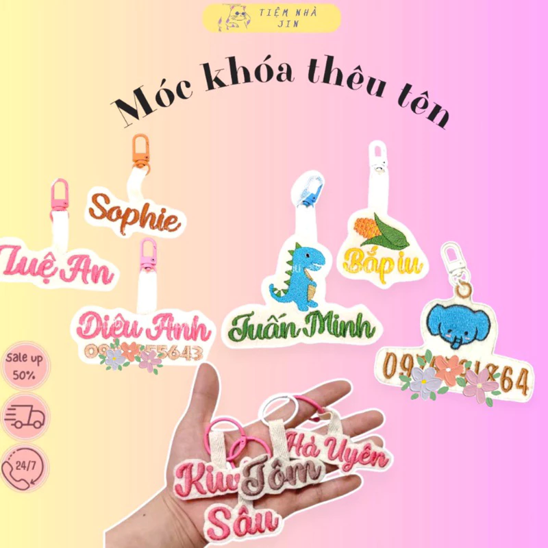 🔥 Móc khóa thêu tên, nametag thêu theo yêu cầu chống lạc treo balo, túi xách, vali đang giảm giá!