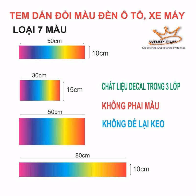 - Thay đổi màu sắc dễ dàng: decal bảy màu giúp bạn thay đổi màu sắc của đèn xe một cách nhanh chóng và dễ dàng.