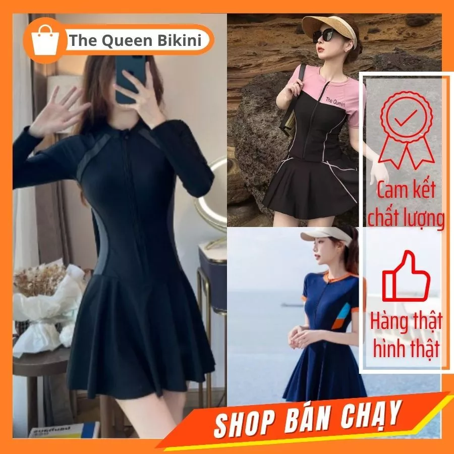 🔥 Đồ bơi liền thân nữ Bikini một mảnh kín đáo dạng váy đi biển áo tắm khóa zip tay ngắn & dài size S – 2XL The Queen 082 đang giảm giá!