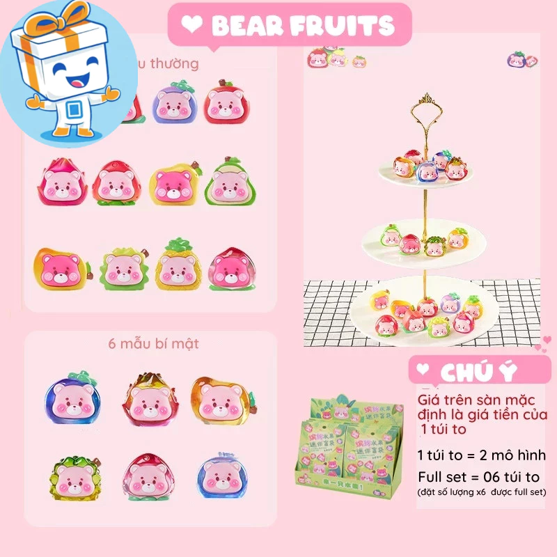 Bear Fruits – Hộp Mù Blind Box Túi Mù Đồ Chơi Mô Hình Gấu Dâu Mini Bản Trái Cây Cute Có Hương Thơm