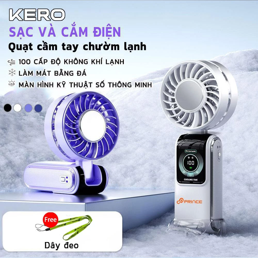 Quạt Mini Di Động KERO N106 được quảng cáo là “Làm mát với đá LED, Màn Hình Kỹ Thuật Số, Động Cơ Không Chổi Than 100 cấp Tốc Độ Gió Cao”. Đây là một trong số những mẫu quạt mini hiện nay tích hợp đa chức năng, nhưng vẫn không tránh khỏi những giới hạn vật lý đã nêu ở phần trên. Dưới đây là một số điểm nổi bật và cách tối ưu hoá khi sử dụng: