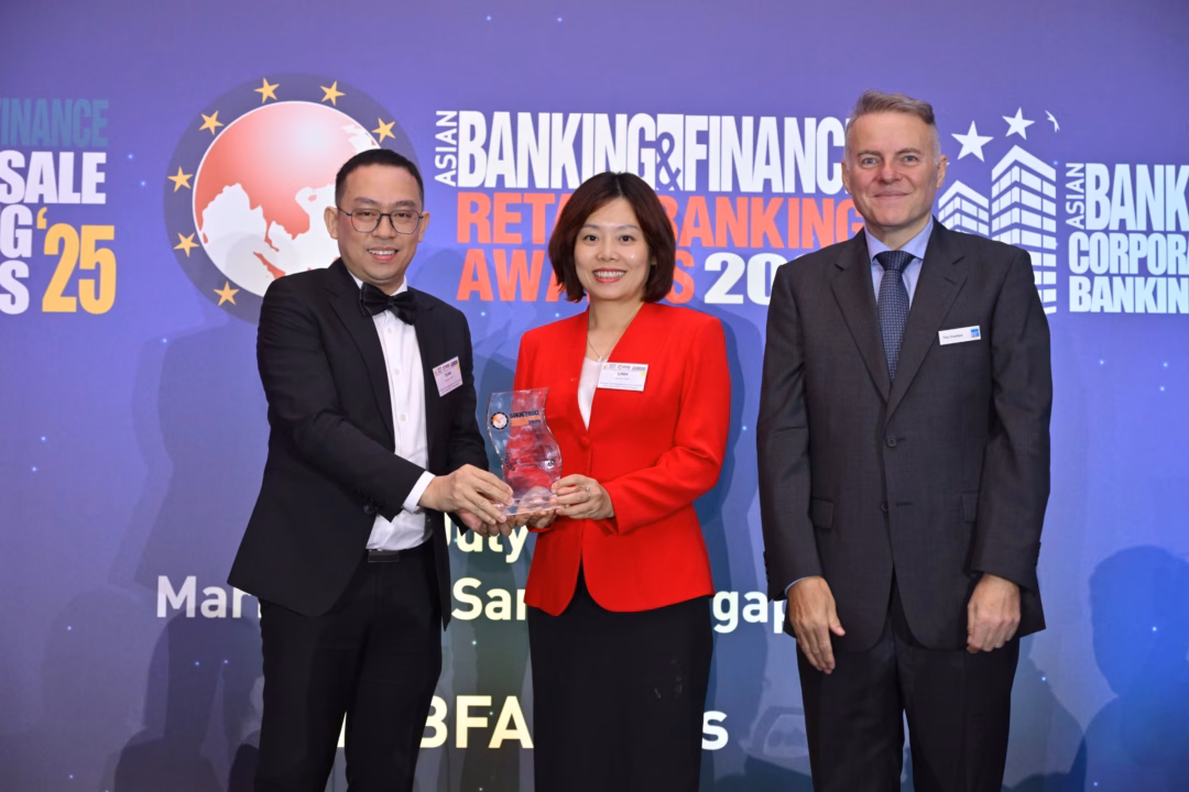 Đại diện Techcombank, ông Nguyễn Anh Tuấn, Giám đốc Khối Ngân hàng bán lẻ và bà Nguyễn Vân Linh, Phó Giám đốc Khối Ngân hàng bán lẻ, đã nhận giải tại lễ trao thưởng diễn ra vào ngày 3/7/2025 tại Trung tâm Hội nghị & Triển lãm Marina Bay Sands, Singapore.