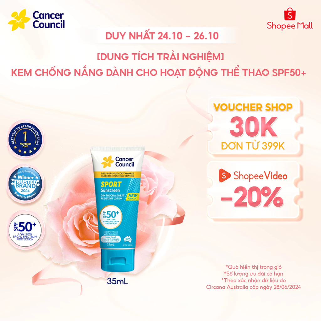 🔥 [MINISIZE 35ML] Kem chống nắng dành cho hoạt động thể thao Cancer Council SPF50+ 35ml đang giảm giá!